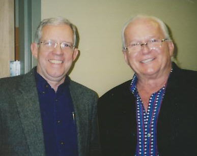 Once upon a time, there was the Kingston Trio. Millions of guys heard them and then went out and bought guitars. Most of those millions got over their obsession. Some never did. Among the latter are The Fabulous G-Strings, originally composed of Gilbert Benton, Bill Horine, Chris Benton, and me, Bill Crider. The group had a hard time chosing a name. First we thought of Bill Benton, Bill Benton. But then we added a new member, Rochelle Brunson, so that name was out. Since we could play only in one key (the key of G) we decided on The G-Strings. Since that was a little less than glamorous, we became The Fabulous G-Strings. (Left to Right in the photo below: Chris Benton, Gilbert Benton, Rochelle Brunson, Bill Horine, and me, Bill Crider.) As for me and the Kingston Trio, I've remained a fan since first hearing them in 1958. On December 30, 2002, I saw them in concert again and got the chance to go backstage and meet Bob Shane, the only original member still with the group. Below the photo of The Fabulous G-Strings, there's one of me and Bob Shane before the concert. I gave the Trio members (George Grove and Bobby Haworth are the other two) copies of A Knife in the Back, which is dedicated to the Kingston trio.
